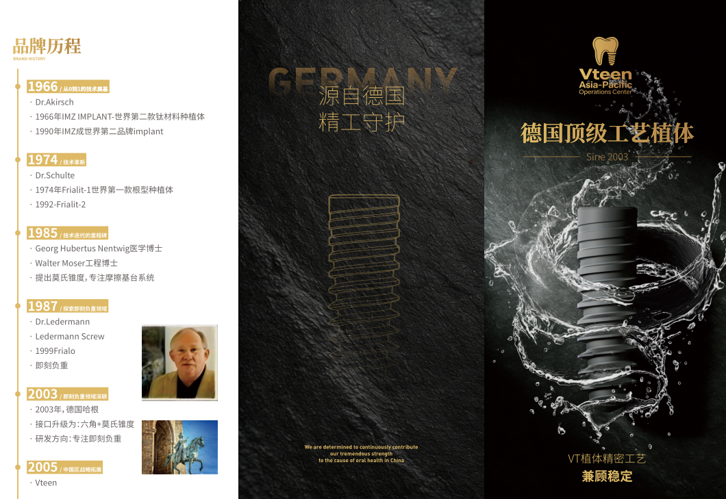 从1966年IMZ IMPLANT的诞生,到如今覆盖多产品线、贯通手术与修复的完整解决方案,Vteen的历程是一部牙科种植技术的演进史。品牌以“患者需求”为北极星,以“技术创新”为引擎,在严谨的德国工艺中注入温暖的人本关怀。