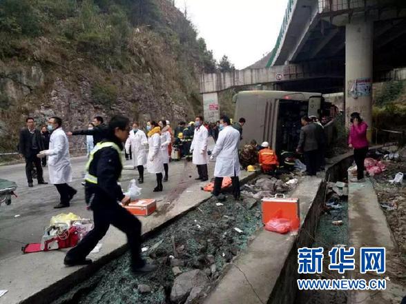 1月22日,救援人员在广西南丹县大客车侧翻事故现场实施救援。当日上午,一辆过境大客车在广西南丹县210国道芒场路段发生侧翻,目前已导致6人死亡,其中包括1名儿童,另有多人受伤。事发后,当地消防、公路、交警、卫生等部门迅速赶赴现场处置、救援。新华社发